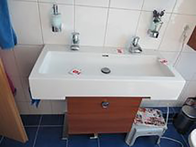 Sanierungsmöglichkeiten durch partielle/punktuelle Oberflächeninstandsetzung von Waschbecken und Sanitärkeramik /(derzeit nur Weißtöne).